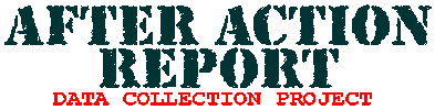 The After Action Data Collection Report Project (AARDCP) was conducted from May 2007 to June 2008 in an attempt to identify basic trends within the Flames of War gaming community. This process included the investigation into specific aspects of scenario and army list construction and the effect each has on player success. The data included in this study was provided voluntarily by Flames of War players using an electronic form posted on the internet as the primary collection method. Data that provided too many validation issues to be handled by such a form were sorted in order to create the requisite population sets for data comparison.